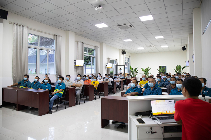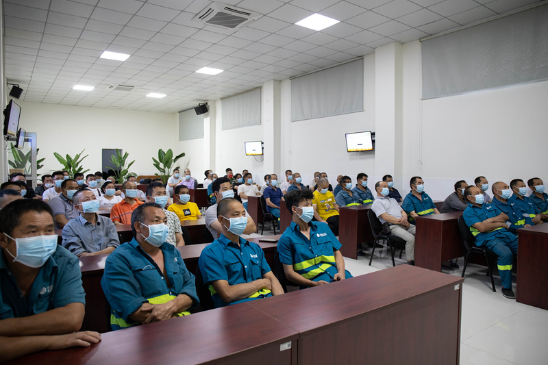 为提升农民工安全生产意识,切实加强对农民工的操作技能、职业健康教育,2022年4月26日晚,jS333金沙线路在井盖基地会议室举行了首期“民工夜校”培训活动。