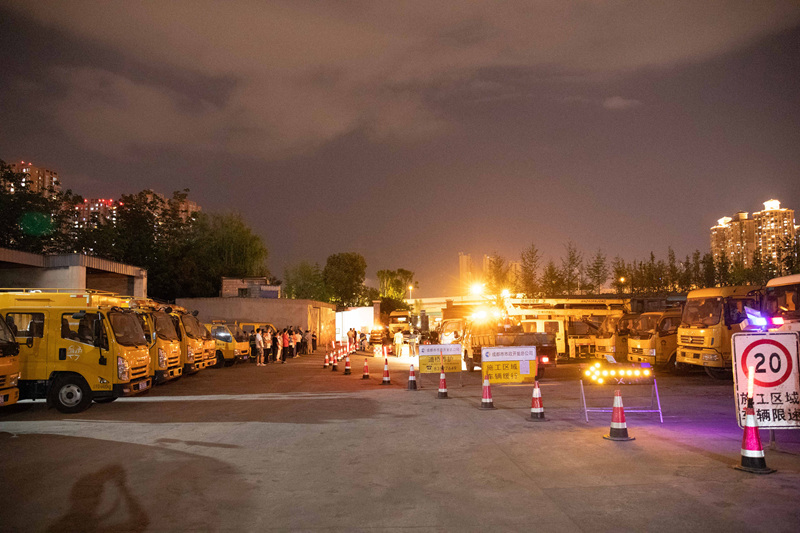 培训结束后,在井盖基地设备停放区,开展了占道施工打围实操训练。演示人员按照占道施工打围要求,在模拟道路上摆放锥桶、防撞桶、导向灯、限速标志、施工提示牌等物资。打围结束后,质量安全部、工程管理部、维护管理部管理人员与在场观摩的农民工兄弟进行了现场交流讨论,收集了许多有用的建议,强化了学习效果。