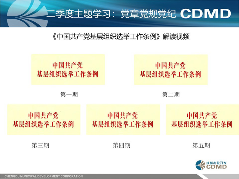 在二季度主题学习中,围绕党章党规党纪的主题,秦泰书记带领大家学习了《中国共产党纪律处分条例》主要内容,组织观看了《中国共产党基层组织选举工作条例》系列解读视频。