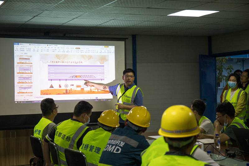 “民工夜校”开始前,由西片区维护项目部和三环路维护项目部作业人员展示占道打围的安全操作规程,在防撞缓冲车的保护下,作业人员按照打围要求,完成过渡区、缓冲区、作业区的道路打围和施工标志标牌设置。在会议室,工程管理部部长余位佳与作业人员亲切交流,一起对打围操作过程中的不足进行了探讨。